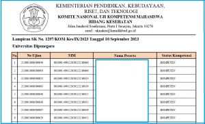 Keberhasilan ini tercantum dalam Surat Keputusan Komite Nasional Uji Kompetensi Mahasiswa Bidang Kesehatan, Kementerian Pendidikan, Kebudayaan, Riset, dan Teknologi Nomor: 1297/Kom-Kes/Ix/2023, yang mengumumkan hasil UKOM Mahasiswa Bidang Kesehatan Periode II Gelombang 2 Tahun 2023.